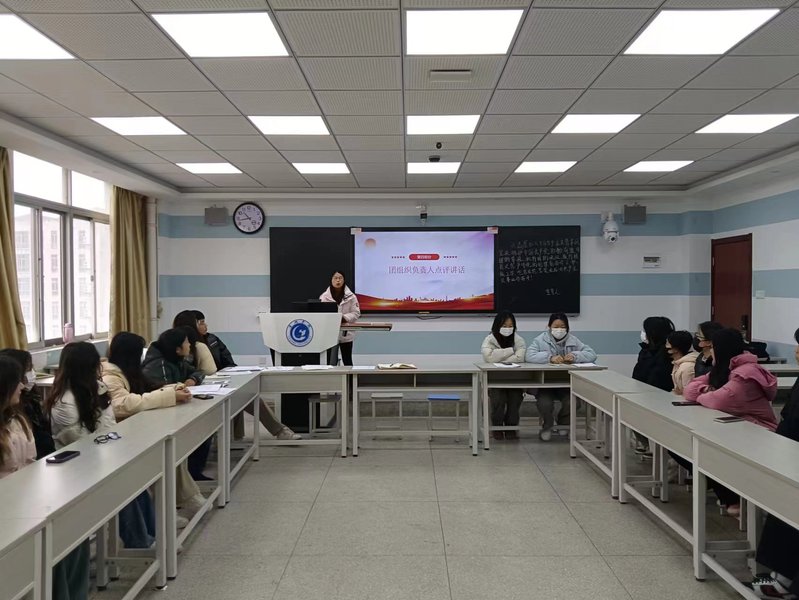 首先,李蕊向大家介紹了此次團(tuán)員和青年主題教育專題組織生活會的主要流程。她對學(xué)年主題教育情況總結(jié)發(fā)言,針對歷次主題教育活動、青年大學(xué)習(xí)、智慧團(tuán)建等團(tuán)支部建設(shè)工作等學(xué)習(xí)完成情況進(jìn)行工作匯報。接著,團(tuán)支部書記、團(tuán)支委及其他團(tuán)員依次上臺根據(jù)個人工作實際完成情況進(jìn)行發(fā)言,勇于批評和自我批評,交流體會,檢查不足。隨后,李蕊帶領(lǐng)同學(xué)們進(jìn)行民主教育評議,對各團(tuán)員發(fā)言進(jìn)行綜合評價。隨后,許沙對本次會議進(jìn)行總結(jié)發(fā)言,提醒同學(xué)們作為新時代青年,要校準(zhǔn)人生航向、矢志奮發(fā)成才、切實把思想和行動統(tǒng)一到習(xí)近平總書記重要講話和重要指示批示精神上,針對班級情況加強(qiáng)班級團(tuán)支部的組織建設(shè),完善團(tuán)支部的工作制度,共同解決班級中存在的問題。同時她強(qiáng)調(diào)同學(xué)們要在今后的學(xué)習(xí)生活中要以更高的要求監(jiān)督自己,為建設(shè)高質(zhì)量班集體做出自己的貢獻(xiàn),提醒同學(xué)們期末考試臨近,要把握好復(fù)習(xí)節(jié)奏和進(jìn)度,爭取在考試中取得優(yōu)異成績。最后,李蕊帶領(lǐng)全體團(tuán)員唱共青團(tuán)團(tuán)歌、重溫入團(tuán)誓詞,激勵同學(xué)們爭做優(yōu)秀團(tuán)員。大會結(jié)束之后,由支部委員組成的評議小組結(jié)合投票結(jié)果以及團(tuán)員們的綜合素質(zhì)表現(xiàn),確定出最終的評議結(jié)果,在輔導(dǎo)員老師的審核之后進(jìn)行公示。
