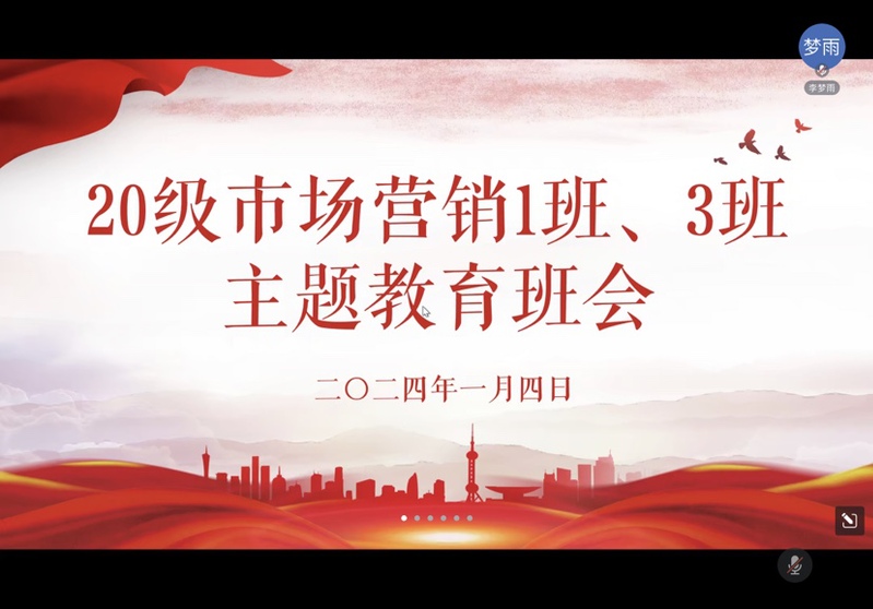 為促進班級同學之間的溝通交流,提高同學們的安全防范意識,20級市場營銷一班于14日晚在線上開展寒假主題教育班會。此次會議由輔導員李夢雨主持,20級市場營銷1班、3班全體成員參加。