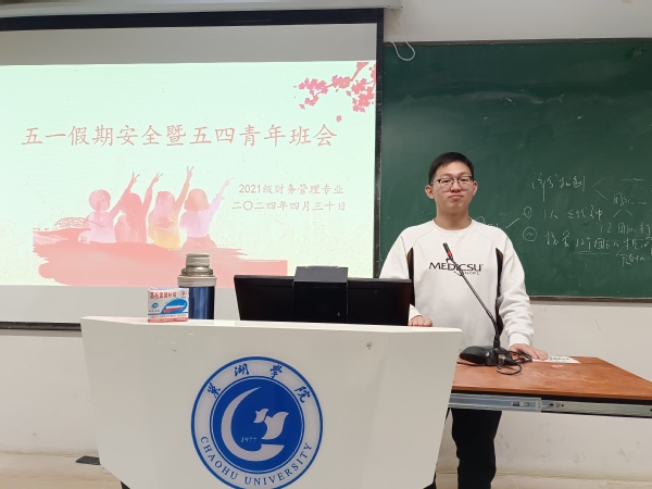 為積極推進班風學風建設,提高同學們的假期安全意識和紀律意識,21級財務管理專業于4月30日下午在慎思樓中104教室召開五一假期安全暨五四青年班會。本次會議由輔導員任潔老師主持,全體成員參加。