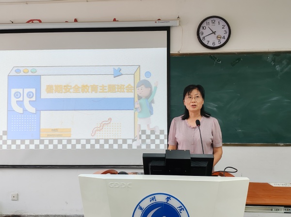 郭鳳英對21電商班全體同學的三年成長進步倍感欣慰。隨后,她圍繞誠信考試和暑期安全兩大主題與同學們親切交流。她表示,面對期末考試大家要做到三點:考前認真復習、考中誠信作答、考后及時總結。郭鳳英表示,暑假是同學們及時“充電”的好時段,留校考公考研的同學在遵守校紀校規的同時要全力做好復習備考,外出實習的同學則要抓住實踐機會,磨煉專業本領,實現高質量就業。