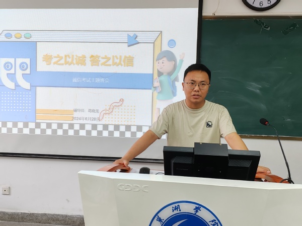 會上,葛曉龍就期末考試和暑期安全問題進行了詳細解讀。他表示,期末考試是對本學期學習情況的一次檢測,更是對同學們誠信度的檢驗,要認真復習、誠信考試。接著,他就暑期留校安全、外出實習等事項進行詳細解讀。他表示,留校同學要盡快提交申請表和安全承諾書,全體同學要做好自身安全防范工作。