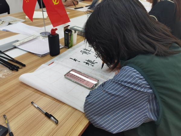 活動現場洋溢出文墨之香,風雅之氣,伴隨著悠揚典雅的音樂旋律,同學們全神貫注,沉浸于書法的世界之中,用心體悟每一個漢字的獨特魅力,細細品味每一筆、每一劃間蘊含的文化韻味與藝術美感。在靜謐的氛圍里,仿佛與千年的文化傳統進行了一場心靈的對話,不僅在技藝上得到了提升,更在精神上受到了一次深刻的洗禮,對中國字的美感與意蘊有了更為深刻的理解和感悟。