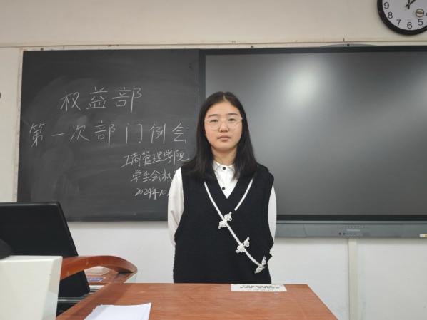 為使各班權益委員盡快熟知自己的工作內容,能夠高效率、高質量的完成工作,工商管理學院于10月10日中午在博學樓106教室召開第一次權益委員會議,此次會議由權益部負責人秦淑崢主持,權益部全體成員及各班權益委員參加。