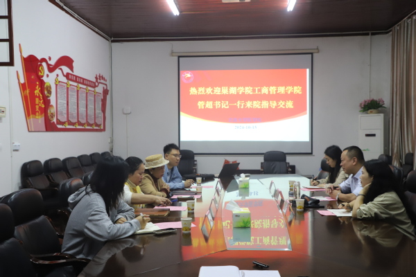 10月16日下午,管超一行來到湖南大學進行調研交流。湖南大學工商管理學院黨委副書記李恩軍、黨辦主任馮兵計、團委書記周強熱情接待,并舉行座談會。會上,李恩軍介紹了工商管理學院的基本情況,馮兵計詳細介紹了學院在黨建方面的成果和舉措,周強講述了學院“商學登高”文化育人計劃和“商道致遠”實踐育人計劃的實施情況以及輔導員工作室的培育情況。