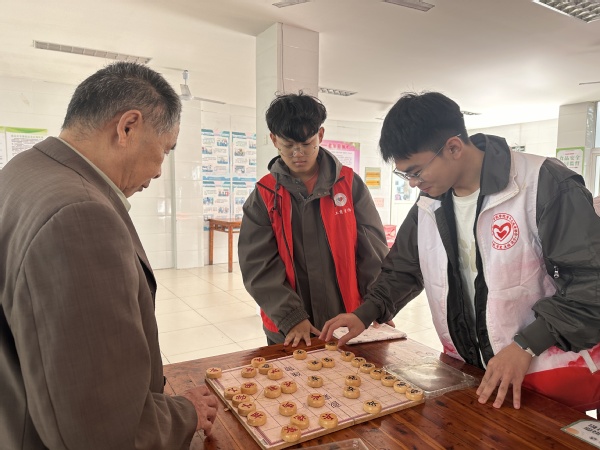 書法傳情,“棋”樂無窮。在眾多老人中,有一位擅長書法的爺爺。他被志愿者的熱情和關愛打動,與志愿者愉快地交談起來。爺爺講述著自己年輕時的故事和對書法的熱愛,志愿者則聚精會神地聆聽著。交談中,爺爺的臉上洋溢著幸福的笑容,他高興地拿出自己的書法作品,送給這些可愛的志愿者,以表達自己內心的感謝。志愿者還與老人們圍坐在棋盤邊,展開了一場精彩絕倫的象棋比賽。棋盤上,雙方你來我往,互不相讓。老人們時而陷入沉思,時而露出自信的笑容。其他人則在一旁為老人們加油鼓勁,整個過程氛圍融洽和諧,歡聲笑語此起彼伏。