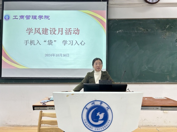 為深入貫徹落實立德樹人根本任務,進一步弘揚和培育學院優良學風,規范課堂教學秩序,強化課堂紀律,提高教學效果,增強學生的文明修養及自律意識,工商管理學院于10月30日在慎思樓中101教室開展2024年秋學期學風建設工作推進會暨無手機課堂啟動儀式。本次會議由學生管理專項負責人汪鵬程主持,院黨委副書記金晶、輔導員李陽出席,各班班長、學習委員共同參加。