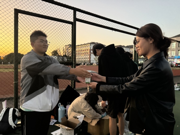 首先,老師們來到訓(xùn)練場地觀看運動員們的訓(xùn)練。運動員們訓(xùn)練張弛有道,動作精準(zhǔn)有力,展現(xiàn)出自信樂觀、拼搏奮斗的精神風(fēng)貌。老師們帶著親切笑容問候運動員,詳細(xì)詢問訓(xùn)練情況和狀態(tài),現(xiàn)場氛圍溫暖和諧。隨后,陶有田對在惡劣天氣和時間緊迫的雙重挑戰(zhàn)下卻依然堅持訓(xùn)練的同學(xué)給予高度贊揚。他強調(diào),運動員們要保持積極向上的精神狀態(tài)并鼓勵運動員們發(fā)揚吃苦耐勞、頑強拼搏的精神,以充滿奮斗激情的青春姿態(tài),勇敢積極地應(yīng)對各種困難,在挑戰(zhàn)中砥礪前行,在困境中磨煉自我。爭取為學(xué)院爭得榮譽、創(chuàng)造佳績,讓訓(xùn)練成果在賽場上綻放光彩。最后,金晶指出運動員們的訓(xùn)練之旅是充滿艱辛的漫漫長路,每一步都充滿挑戰(zhàn)。她鼓勵運動員們堅持不懈,持之以恒地投入訓(xùn)練,不單單矚目于結(jié)果,也要珍視過程,并希望運動員們盡力而為。