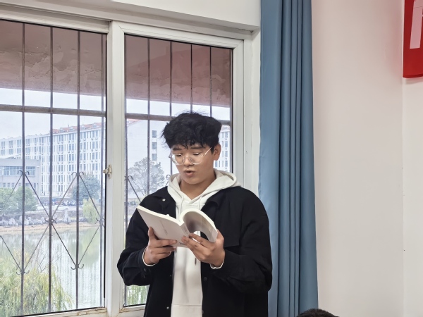 首先,同學們自行分組閱讀推薦書籍,積極發表自己的閱讀心得與感悟,分享自己最喜歡的篇目語句。接著,段萌萌同學表示,他在閱讀《習近平用典(第一輯)》的過程中深有感悟,書中“非淡泊無以明志,非寧靜無以致遠”告訴大家只有內心淡泊寧靜,不被物質欲望所困,不被外界干擾,才能明確自己的志向,達到遠大的目標。陳笑同學分享自己閱讀《苦難輝煌》的感悟,她表示在書中紅軍戰士們于重重困境中奮勇前行,跨越萬水千山,沖破敵人圍追堵截是一段用熱血與信念鑄就的傳奇,彰顯堅韌不拔的精神,啟迪同學們銘記歷史,汲取奮進力量,砥礪前行追夢,勇擔時代使命。最后,袁曉琳宣布本期獲得最佳閱讀者的同學,也肯定并感謝了同學們的精彩分享,并分享自己在讀書時印象最深刻的句子——“博學之,審問之,慎思之,明辨之,篤行之”,指出學校為教學樓取名時的殷切期望,希望同學們可以廣泛學習各方面知識,博學多才,慎思敏行,為社會進步與祖國發展貢獻自己的力量。