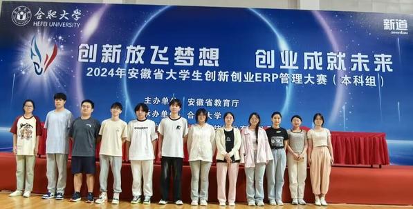7月20日,由安徽省教育廳主辦,合肥大學承辦的2024年安徽省大學生創新創業ERP管理大賽(本科組)在合肥舉行。本屆大賽吸引了安徽大學、合肥工業大學、安徽財經大學、安徽建筑大學等共31所省內院校代表隊參加。面對強勁的競爭對手,我校選派十二位同學組成的三支代表隊,在指導老師甘泉、張成等的悉心指導下,最終取得一等獎2項,二等獎1項的優異成績,展現出超群的綜合實力。優異的獲獎成績凝結著指導教師和參賽學生堅持不懈的努力。