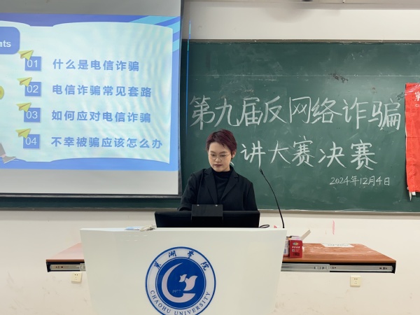 為提高同學們的網絡安全意識,增強反詐防騙能力,工商管理學院于12月4日中午在慎思樓中401教室舉辦第九屆反網絡詐騙演講大賽決賽。本次比賽由電子商務協會主辦,協會負責人尤天一主持,協會指導老師張潔,團委副書記儲嵐霖擔任評委,全體參賽人員參加。