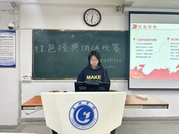 首先,韓晗對于本場比賽的規(guī)則進行詳細說明,故事講述的內(nèi)容要結(jié)合黨的二十屆三中全會精神和中華人民共和國成立75周年這兩點進行講述,從而體現(xiàn)出青年大學(xué)生愛黨、愛國、愛社會主義的真摯情感和銳意進取,積極向上的青春風(fēng)采。接著,韓晗對演講者的措辭與時間提出明確的要求,她指出每一位演講者都應(yīng)該用普通話進行演講并且演講時間控制在5至10分鐘之間。隨后,韓晗提到本場比賽的評分細則是由語言表述,講述技巧,臺風(fēng)儀表,PPT內(nèi)容四個部分組成。最后,胡甜,劉騏源兩位評委對每一位演講者的表現(xiàn)對予公正的評分與精彩的點評,兩位評委都詳細地指出每位演講者表現(xiàn)的精彩之處與不足之處。