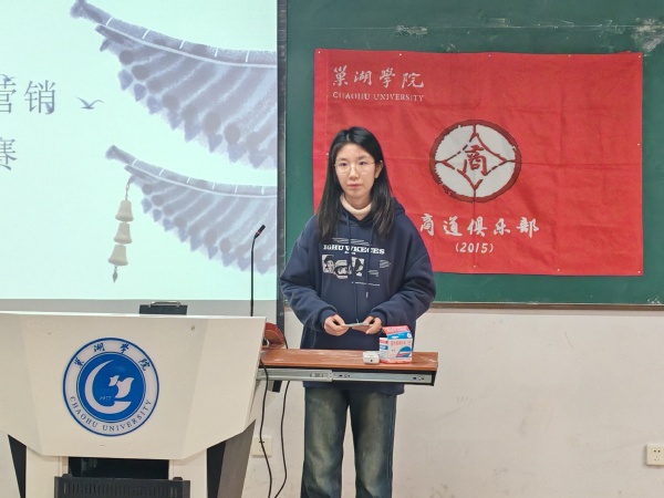 為鼓勵(lì)同學(xué)們?cè)鰪?qiáng)市場(chǎng)營(yíng)銷領(lǐng)域的創(chuàng)新思維和實(shí)踐探索,工商管理學(xué)院于12月18日下午在慎思樓中104教室舉辦徽文化市場(chǎng)營(yíng)銷創(chuàng)新大賽決賽。本次比賽由商道俱樂(lè)部主辦,商道俱樂(lè)部實(shí)踐部干事葛蕊蕊主持,指導(dǎo)老師王瑩,社長(zhǎng)趙宇杰,副社長(zhǎng)趙潔擔(dān)任評(píng)委,全體參賽選手參加。
