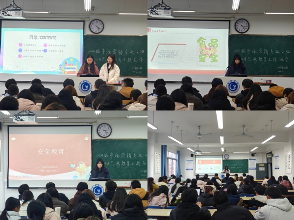 首先,袁曉琳根據(jù)本月主題思政主題教育班會(huì)的內(nèi)容提前進(jìn)行自由分組,每個(gè)小組負(fù)責(zé)一個(gè)主題,會(huì)前充分討論和準(zhǔn)備。接著,班會(huì)當(dāng)天按組進(jìn)行展示,第一個(gè)小組從多個(gè)方面給同學(xué)們普及《中華人民共和國(guó)憲法》的內(nèi)容和重要性,讓同學(xué)們對(duì)《中華人民共和國(guó)憲法》的認(rèn)識(shí)更加深刻。第二個(gè)小組從自身安全、生理安全、宿舍安全用電等三個(gè)方面展開(kāi)安全教育,提醒學(xué)生注意冬季用電安全,切勿存放或使用違規(guī)電器,做到人走斷電。第三個(gè)小組為同學(xué)們講述心理健康的定義和當(dāng)代大學(xué)生的心理健康狀態(tài),同時(shí)分享緩解心理壓力的方法,讓同學(xué)們時(shí)刻關(guān)注自身的心理健康。第四個(gè)小組重點(diǎn)講述《巢湖學(xué)院學(xué)生違紀(jì)處分辦法(修訂)》和《巢湖學(xué)院學(xué)生公寓安全管理規(guī)定(試行)》等文件,警示同學(xué)們不要違反校紀(jì)校規(guī)。隨后,其他六個(gè)組的同學(xué)依次上臺(tái)為同學(xué)們普及電信網(wǎng)絡(luò)詐騙知識(shí),從電信網(wǎng)絡(luò)的定義、常見(jiàn)詐騙方式、網(wǎng)戀詐騙的危害和預(yù)防網(wǎng)絡(luò)詐騙的方法等多個(gè)方面展開(kāi),為同學(xué)們分享許多的關(guān)于防范電信網(wǎng)絡(luò)詐騙的知識(shí)。最后,袁曉琳對(duì)各個(gè)小組的展示進(jìn)行點(diǎn)評(píng),希望各位同學(xué)牢記本次主題教育的內(nèi)容。