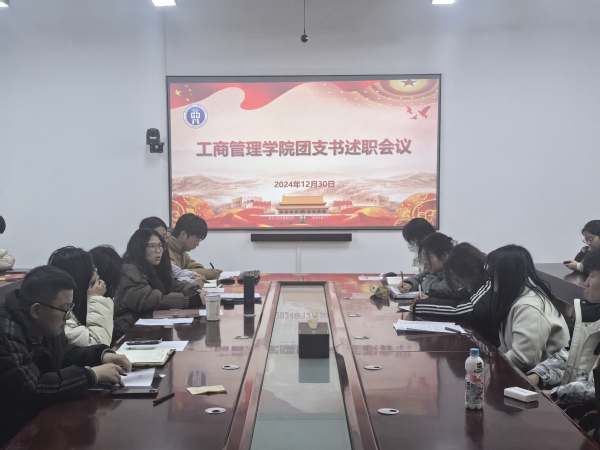 ??為加強基層支部建設,進一步提高團組織的工作效率與質量,工商管理學院于12月30日在博學樓一樓會議室召開2024年度團支部書記述職大會。本次會議由團委書記許沙主持,團委副書記儲嵐霖及輔導員李陽、汪鵬程、何佳佳出席,22、23、24級各班團支書參加。