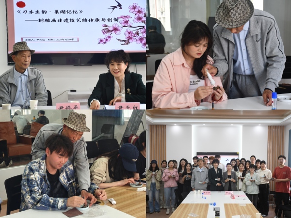 3月26日,學(xué)院在“巢有范”學(xué)生社區(qū)開展“非遺進(jìn)校園”活動(dòng),省級(jí)非遺樹雕畫傳承人尹修平、尹元紅現(xiàn)場(chǎng)演示雕刻技藝,指導(dǎo)學(xué)生創(chuàng)作多件木刻作品。同學(xué)們通過打磨木料、雕琢細(xì)節(jié),在非遺實(shí)踐中領(lǐng)悟“鉆研”與“奉獻(xiàn)”的精神內(nèi)核。