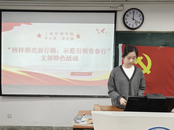 為引導黨支部成員汲取榜樣精神,在示范帶動下堅定理想信念,工商管理學院學生第二黨支部于4月9日下午在博學樓511教室開展“榜樣照亮前行路,示范引領青春行”支部特色活動。此次活動由工商管理學院學生第二黨支部書記袁曉琳主持,工商管理學院學生第二黨支部全體黨員及入黨積極分子參加。