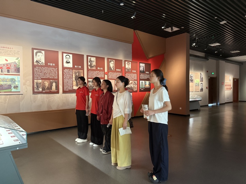 進(jìn)入博物館后,在講解員帶領(lǐng)下走進(jìn)這座蘊(yùn)藏著深厚歷史文化底蘊(yùn)的博物館,親身感受巢湖地區(qū)悠久的歷史和燦爛的文化,講解員帶領(lǐng)團(tuán)隊(duì)成員依次參觀了博物館的各個(gè)展廳,隊(duì)員們認(rèn)識(shí)了巢湖從古至今的文化發(fā)展,隊(duì)員們認(rèn)真學(xué)習(xí)巢湖紅色發(fā)展歷史。在陳原道,李慰農(nóng)、李克農(nóng)等英烈的革命生涯中,感受他們不屈不撓的毅力和頑強(qiáng)斗爭(zhēng)的精神。學(xué)習(xí)巢湖在支持鄂豫皖蘇區(qū)的反“圍剿”斗爭(zhēng)、蔣家河口戰(zhàn)斗、渡江戰(zhàn)役斗爭(zhēng)的人物事跡,感受巢湖人民為解放戰(zhàn)爭(zhēng)而做的不懈努力。隨后,學(xué)生黨員懷著對(duì)革命烈士們無比敬意和無限哀思,向革命烈士敬獻(xiàn)電子花。活動(dòng)結(jié)束之際,團(tuán)隊(duì)中黨員同志來到黨旗前,面向黨旗舉起右拳重溫入黨誓詞,回憶入黨初心,堅(jiān)定目標(biāo)使命。