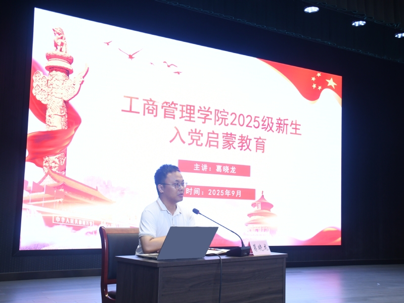9月10日下午,工商管理學院在大學生活動四樓禮堂舉行2025級新生入學教育活動。活動邀請學院組織員、各專項工作負責人為新生開展入黨啟蒙教育、資助政策宣講、“第二課堂成績單”制度解讀等教育活動,幫助新生明晰學業目標、筑牢成長根基,更快更好地適應大學階段的學習與生活。活動由學院黨委副書記何冬冬主持。