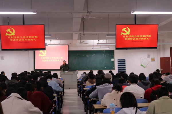 11月20日中午12:10,化學與材料工程學院第27期黨課培訓班開班典禮于慎思樓中101教室舉行。本次黨課由化材學院黨委書記張繼山主講,化材學院第27期黨校發展對象及入黨積極分子參與此次黨課學習。