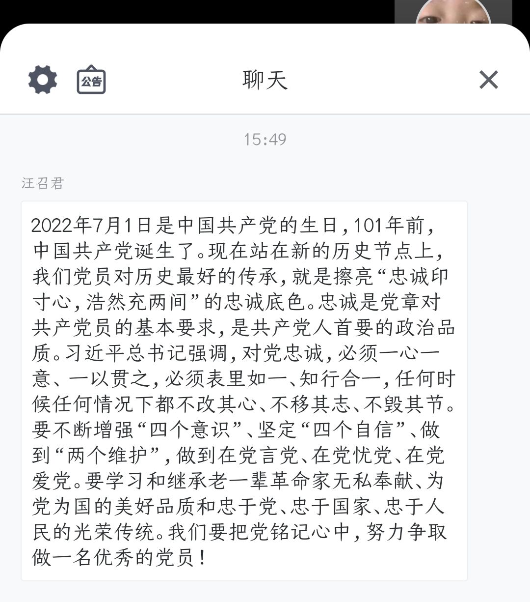 為慶祝中國共產黨成立101周年,弘揚黨艱苦奮斗的精神,堅定理想信念,提高廣大學生黨員的黨性修養,6月30日,化材學院各學生黨支部在線上組織開展“紅心向七一,永遠跟黨走”主題黨日活動,本次活動由各學生黨支部書記分別組織,全體學生黨員參與。