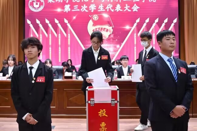 在充分發(fā)揚(yáng)民主的基礎(chǔ)上,由第二屆學(xué)生委員會(huì)提出候選人預(yù)備名單,報(bào)校團(tuán)委和院黨委同意后,提交大會(huì)主席團(tuán),經(jīng)大會(huì)主席團(tuán)初步確認(rèn),提交各代表團(tuán)醞釀?dòng)懻?/span>,大會(huì)主席團(tuán)根據(jù)醞釀?dòng)懻撉闆r確定候選人名單,提交代表大會(huì)進(jìn)行選舉。