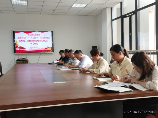 4月19日下午,化學與材料工程學院第三教工黨支部召開學習“習近平:扎實抓好主題教育 為奮進新征程凝心聚力”專題學習研討會,支部全體黨員參加。會議由支部書記李川主持。