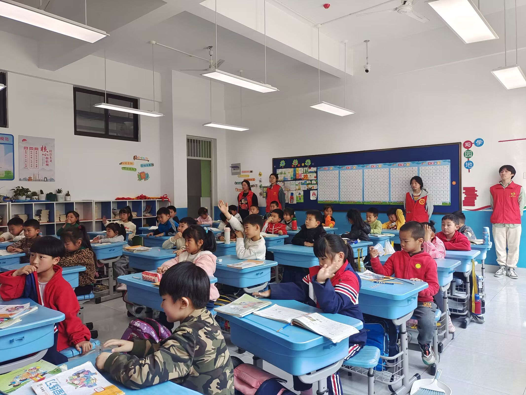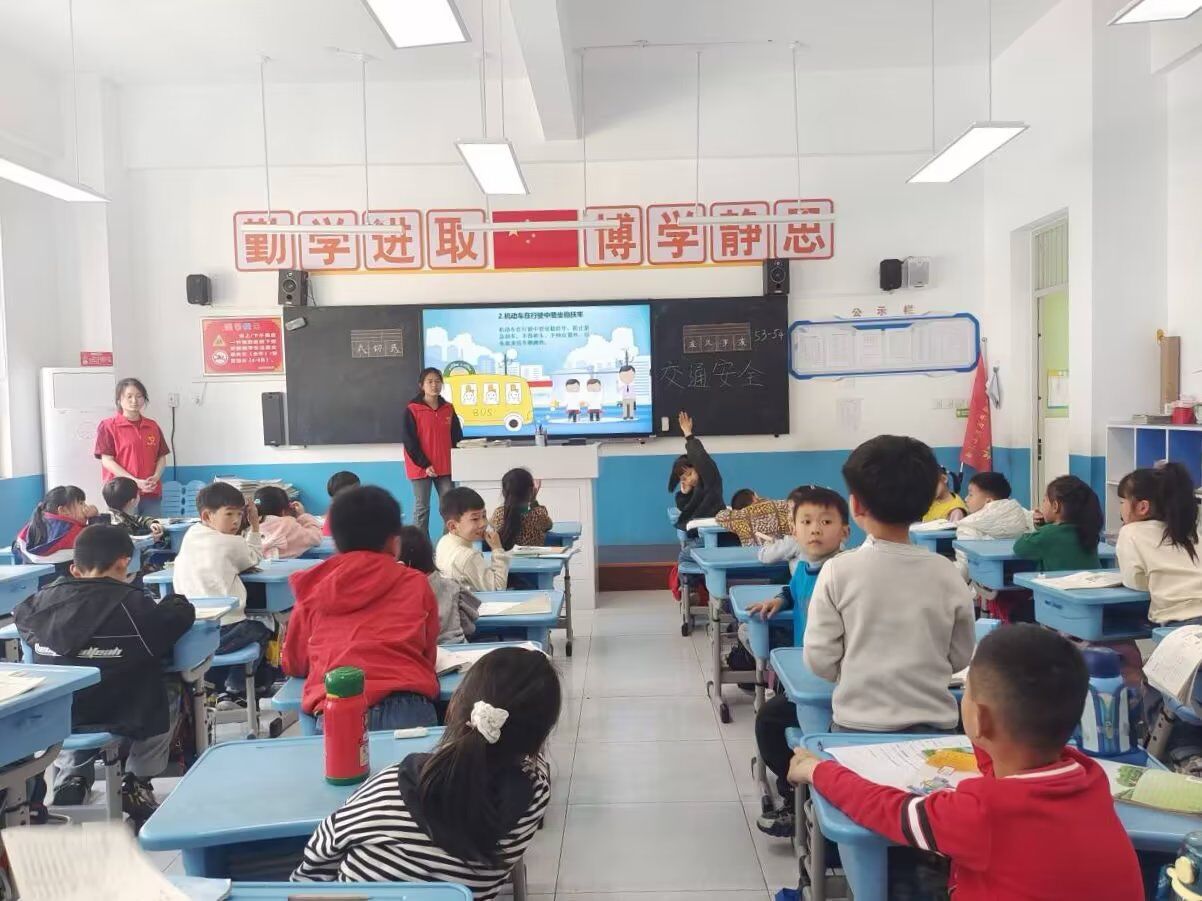 活動伊始,曹雅梅為志愿者們分發(fā)紅馬甲。隨后,青年志愿者們來到對應的班級為小朋友們介紹本次支教活動的目的及意義。為了增加小朋友們的校園交通安全知識。接著,主講人魏鳳妹利用豐富多彩的幻燈片向小朋友們講解。接著,魏鳳妹向同學們普及過馬路要走人行道要看紅綠燈,在馬路上不要嬉戲打鬧,不要翻越欄桿等交通規(guī)則。最后,魏鳳妹通過給同學們觀看交通安全教育短片,加強同學們對交通規(guī)則的了解。至此,本次活動圓滿結(jié)束。