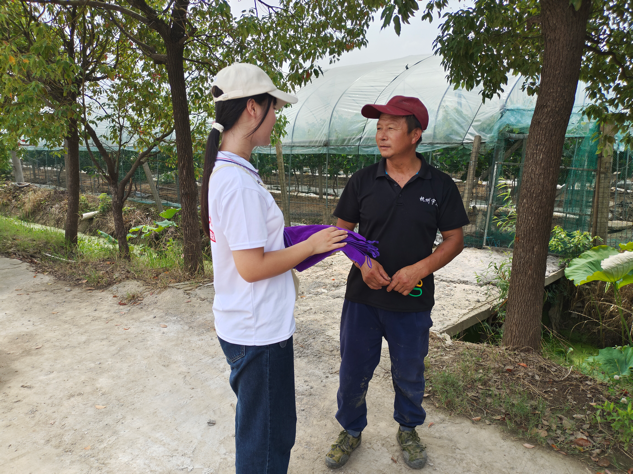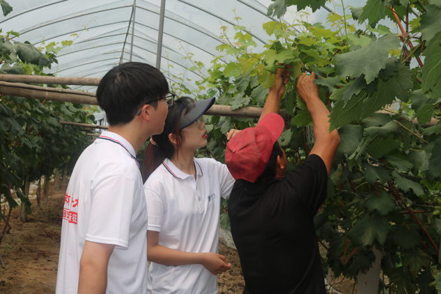 7月1日,來到同大鎮(zhèn)的“葡同凡響”鄉(xiāng)村振興促進團,與當?shù)鼐用襁M行簡單交談后,找到了當?shù)胤N植葡萄的第一批先行者:梁先生。梁先生帶領(lǐng)著我們團隊進入了種植葡萄的大棚里,并對沿路上的各種葡萄進行了介紹,志愿者們也逐漸沉迷在了梁先生的解說之中。隨后,梁先生也十分大方地讓我們參與到了采摘葡萄的過程當中,并對我們的動作,進行了專業(yè)的指導,在此過程中志愿者們也理解到了葡萄采摘過程中的辛苦,并對像梁先生這樣的普通果農(nóng)深感欽佩。