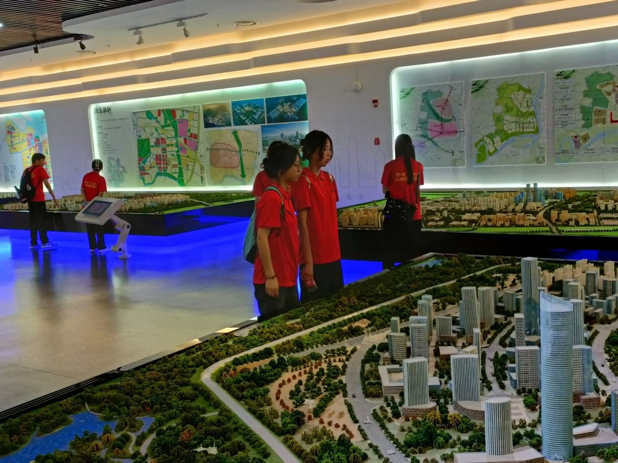 然后,實踐團成員們來到二樓蕪湖市規劃展廳,二樓展廳主要介紹蕪湖市千百年來的歷史變革以及新中國成立以來的城市建設成就,實踐團成員們參觀了“總體規劃、專業專項規劃、重點片區規劃等展區和4D影院、體驗區等。