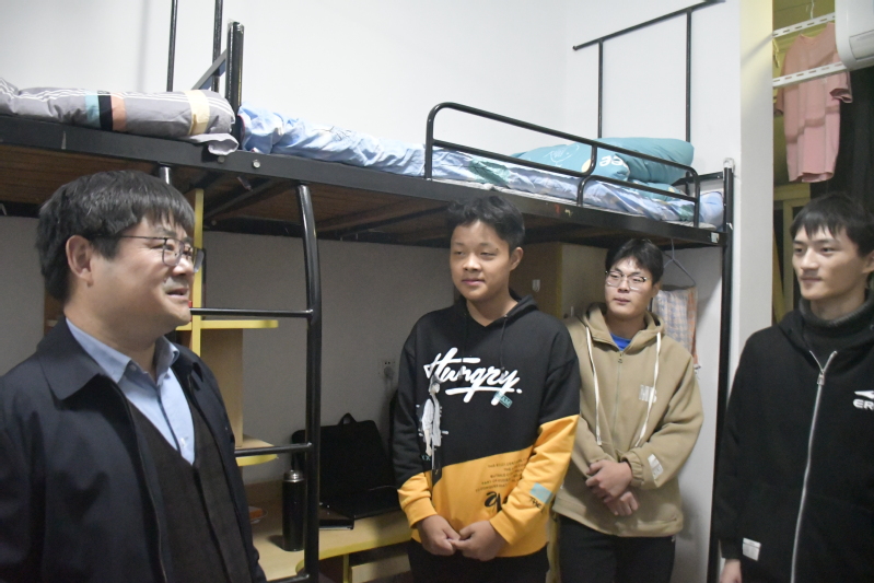 為進一步加強黨員領導干部聯系班級工作,落實學校“五個一”工作,了解學生的學習、生活狀況,推動解決學生思想、心理、生活等實際問題。11月13日晚八點半,校辦公室主任、化材學院黨委書記陳和龍一行,深入走訪學生宿舍。