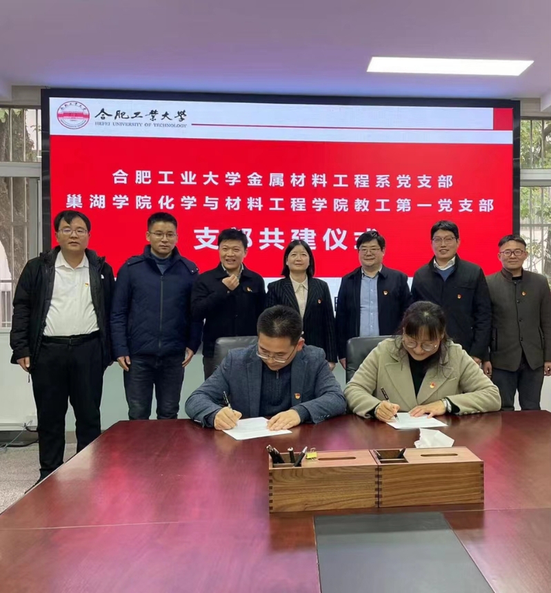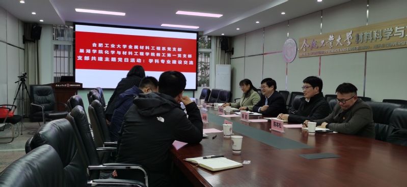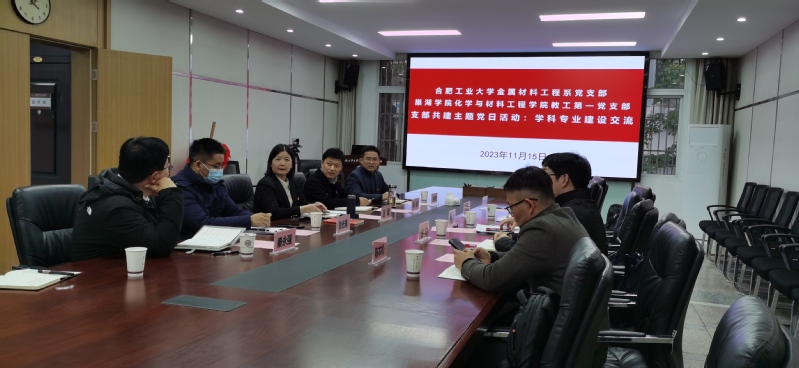 為進(jìn)一步深入落實(shí)新時(shí)代黨的建設(shè)要求,打造具有鮮明特色的黨建品牌。11月15日下午,化材學(xué)院黨委書(shū)記陳和龍攜教工第一黨支部支委成員到合肥工業(yè)大學(xué)材料科學(xué)與工程學(xué)院與金屬材料工程系黨支部,開(kāi)展黨建結(jié)對(duì)共建活動(dòng)。合肥工業(yè)大學(xué)材料科學(xué)與工程學(xué)院黨委書(shū)記呂珺、黨委副書(shū)記朱峰及金屬材料工程系黨支部支委參加活動(dòng)。