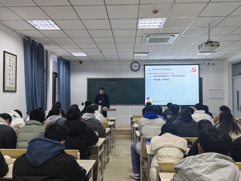 12月13日中午,校辦公室主任、化材學院黨委書記陳和龍以“堅定理想信念,端正入黨動機”為題,為學院第三十五期黨校學員講授黨課。