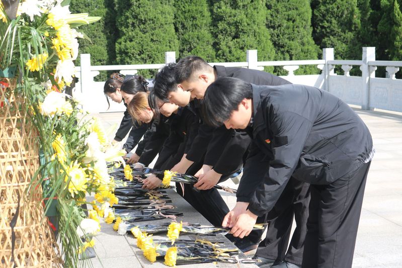 烈士陵園莊嚴肅穆,黨員們在革命烈士紀念碑前肅立默哀,向革命先烈敬獻鮮花并鞠躬致敬,深切緬懷革命先烈。 學生黨員追尋先烈足跡,從紅色革命精神譜系中汲取奮斗力量,涵養(yǎng)愛國情懷,錘煉堅強意志。