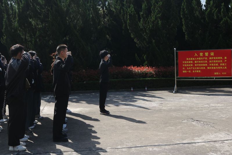 祭掃活動后,學院學生會輪值主席、學生第二黨支部黨員陳佳豪帶領學院全體黨員同志在烈士陵園廣場重溫入黨誓詞。