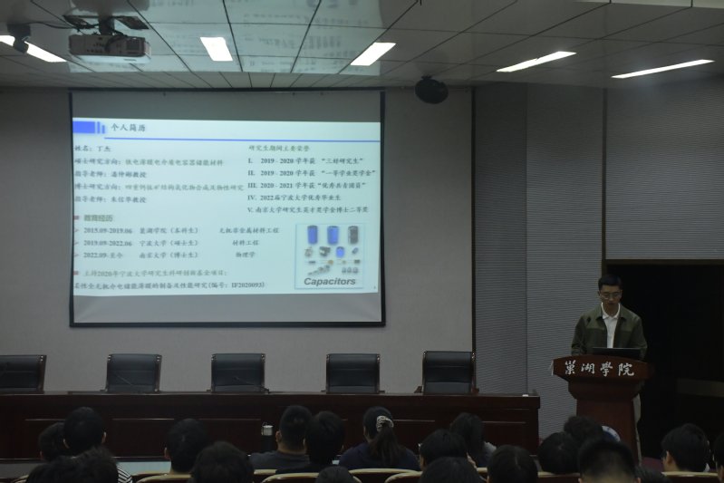11月14日下午,化學與材料工程學院無機非金屬材料工程專業2019屆畢業生、南京大學在讀博士丁杰,應邀在致知樓報告廳作學術報告。報告會由化學與材料工程學院黨委副書記王巍主持,學院相關專業教師和無機非金屬材料工程專業、新能源材料與器件專業部分學生參加了本次報告會。