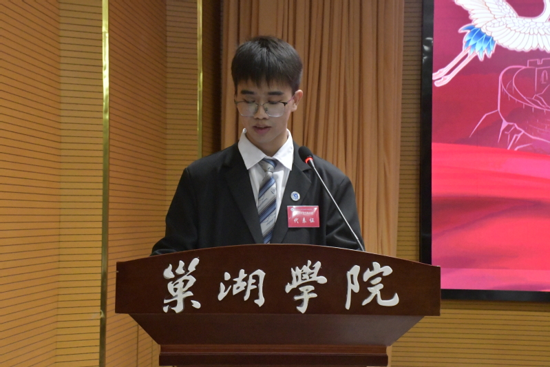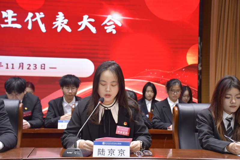 在第一次全體會議上,陳佳豪代表化學與材料工程學院第四屆學生委員會作題為《青春心向黨建功新時代化材學子用青春和熱血譜寫新形勢下學院共青團事業的新篇章》的報告。