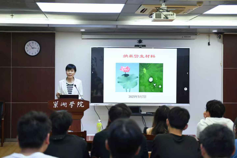5月7日下午,巢湖學院黨委副書記、校長張莉于圖書館視頻會議室,為學院師生做關于納米仿生材料的專題學術報告。