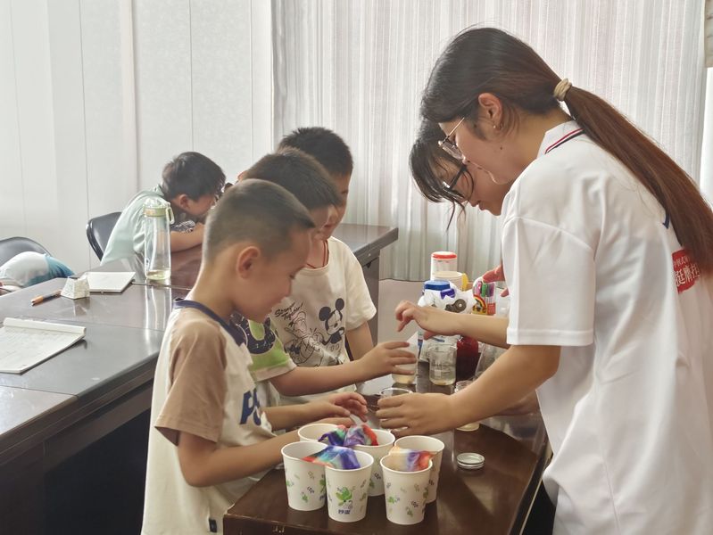 為了激發當地兒童對化學的興趣,實踐團精心策劃了一場“化學盛宴”。通過“彩虹橋”“色素遇上鹽”等簡單易懂的趣味化學實驗,呈現了透明液體變得五彩斑斕、紙巾上“彩虹”相連的奇妙現象。在志愿者的指導下,小朋友們親手操作,觀察化學反應,體驗科學的魅力。