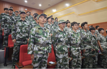 典禮中,一項別開生面的紅歌獻唱環節將氣氛推向高潮。全體新生以軍訓連隊為單位,精神抖擻,依次獻唱經典紅歌《強軍戰歌》《團結就是力量》《歌唱祖國》。激昂的旋律、嘹亮的歌聲與真摯的情感響徹整個報告廳,不僅展現了新生們朝氣蓬勃的精神風貌,更在紅色旋律中涵養了家國情懷,賡續了紅色基因。