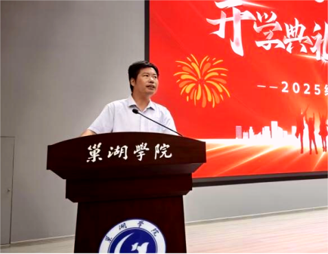 學院院長王小東教授為典禮致辭。他代表學院全體師生向懷揣夢想、遠道而來的2025級新生表示最熱烈的歡迎和最誠摯的祝賀。王小東簡要介紹了化材學院的發展歷程、學科特色、師資力量與科研成就,讓新生對學院有了更為立體和深刻的認識。他著重指出了大學與高中階段在學習方法、生活方式及個人發展等方面的顯著區別,并對新生們提出了四點殷切期望:一要胸懷夢想,志存高遠,將個人理想融入國家發展大局,用實際行動書寫屬于自己的精彩篇章;二要勤奮學習,追求卓越,培養自主學習能力,勇于探索未知領域,在激烈的競爭中脫穎而出;三要團結協作,共同進步,在團隊中發揮優勢,學會溝通與包容,為集體榮譽貢獻力量;四要勇于擔當,服務社會,積極參與社會實踐,在實踐中鍛煉本領、提升自我,努力成長為有理想、有本領、有擔當的時代新人,為國家化學與材料事業的發展貢獻青春力量。