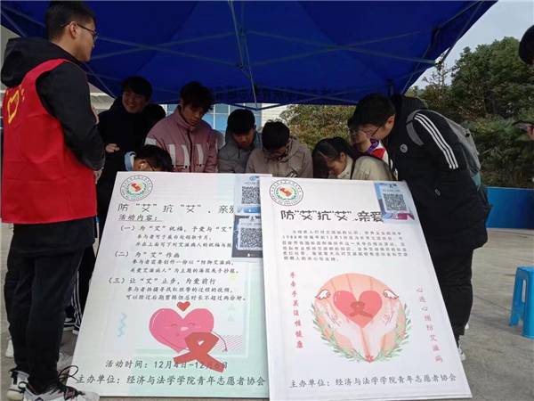 為科普艾滋病防治知識,提高大學生自我防護意識,經濟與法學學院于12月4日至7日在巢湖學院內開展防“艾”抗“艾”主題活動。