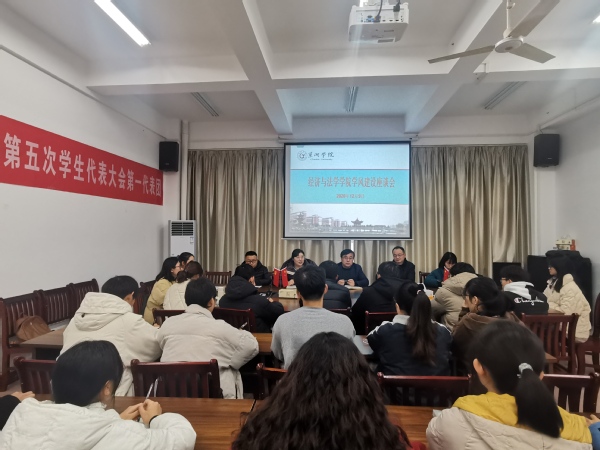 為扎實(shí)推進(jìn)“三全育人”試點(diǎn)改革,促進(jìn)學(xué)風(fēng)建設(shè),12月9日下午,經(jīng)濟(jì)與法學(xué)學(xué)院召開(kāi)學(xué)風(fēng)建設(shè)師生座談會(huì),院黨委書(shū)記王萬(wàn)海、副書(shū)記孫瑋、副院長(zhǎng)施瑋出席會(huì)議,團(tuán)總支書(shū)記劉檾菘、教學(xué)秘書(shū)汪宜香、輔導(dǎo)員徐紅杏以及2020級(jí)各專業(yè)20余名學(xué)生代表參加了座談會(huì)。會(huì)議由黨委副書(shū)記孫瑋主持。