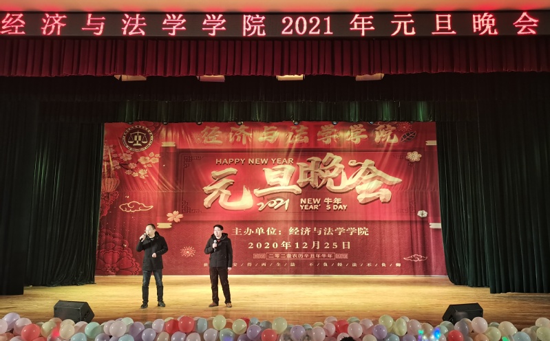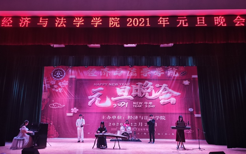 子去丑來騰錦繡,鼠歸牛到競輝煌。為歡度元旦,迎接新年,經濟與法學學院于12月25日晚在學校大禮堂舉辦2021年元旦聯歡晚會。這是一場集樂器合奏、歌曲、舞蹈、相聲、朗誦、舞臺劇的視聽盛宴,古典與流行兼并,溫情與火熱并舉。