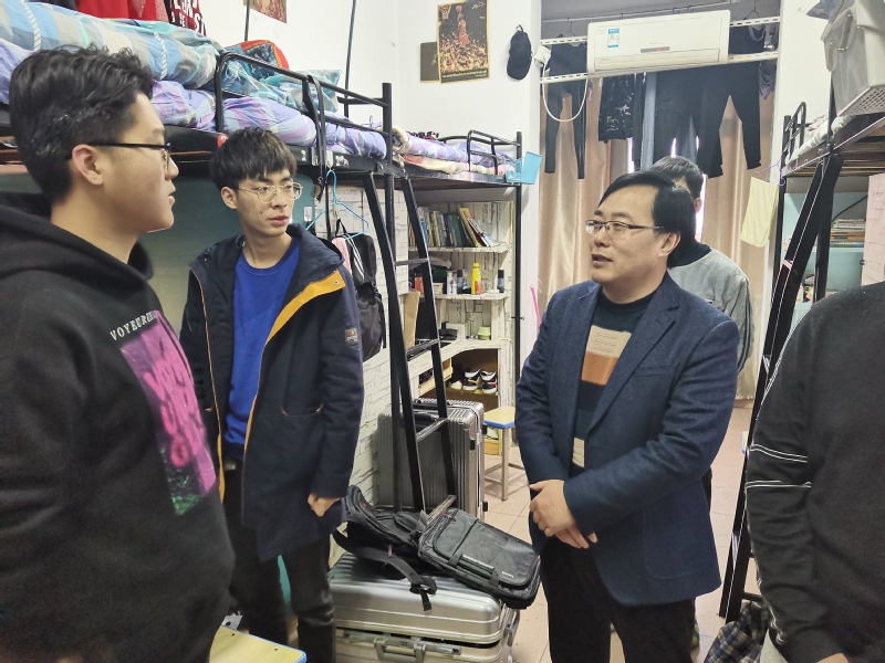 走訪過程中,領導、老師親切詢問了同學們的寒假生活狀態,提醒大家及時收心,盡快調整作息時間,適應新學期的學習和生活節奏,鼓勵同學們用課余時間積極參加各項社會實踐活動,以積極的面貌迎接新學期。宿舍衛生狀況是本次走訪的重要任務之一,不少宿舍因干凈整潔受到表揚,也有個別宿舍衛生狀況亟待改善,領導老師們希望大家能夠注重文明宿舍建設,共同營造積極上進的宿舍氛圍,保持身心的健康發展。最后,輔導員們再次叮囑要做好日常生活規劃和宿舍消毒工作,注意用電安全,排查安全隱患,防止事故發生。