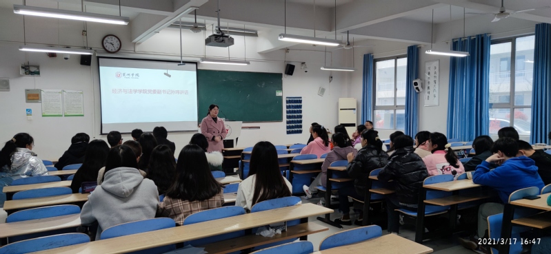 陽春三月,暖意融融。3月17日下午,經濟與法學學院在慎思樓中102教室舉行20級法學3班學生見面會。院長徐志倉、副院長施瑋、院黨委副書記孫瑋出席見面會,20級法學3班全體成員參加會議,見面會由輔導員劉向軍主持。