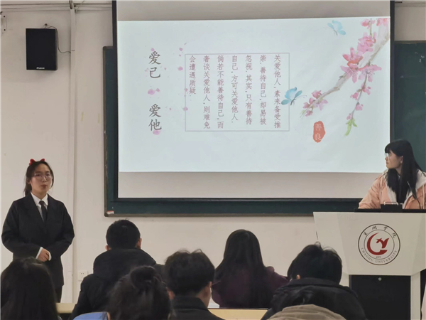 經法學院團總支、學生會生活部于12月13日下午在慎思樓中301教室舉辦以班級為單位的心理活動PPT演講展示比賽。各班級代表依次上臺用PPT演講的方式講述班級心理健康活動開展的背景、目的、內容和意義總結,并展示活動中的照片與視頻,在陣陣掌聲中展現班級的風采。