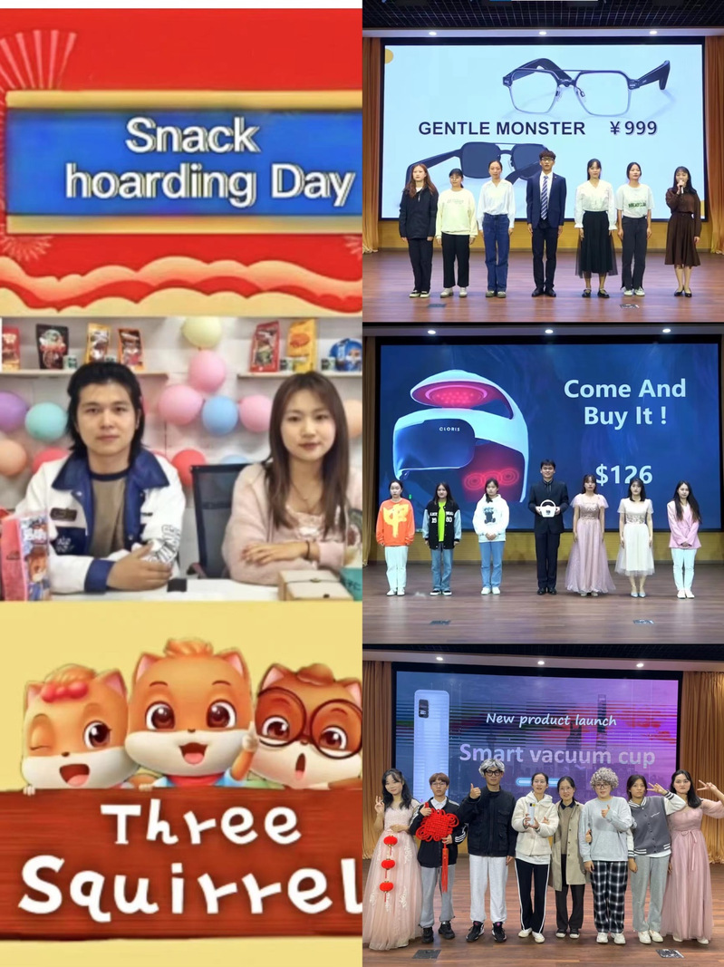 跨境電商網絡直播賽道要求采用純英文進行,從直播產品、編導、主播、運營等直播全流程進行考核。重點考察主播的英語水平、對產品賣點的挖掘、商品特性的展示技巧、直播間前景后景搭建、直播團隊的協助能力等。這也是巢湖學院首次參加直播賽道,經法學院布萊恩特隊搭建了“三只松鼠零食囤貨節”跨境直播間,為粉絲們帶來三只松鼠鴨脖、蟹黃味瓜子仁、黑鴨味脆蓮藕等產品,希望通過跨境直播的方式,推動“三只松鼠”的產品走向世界,將專業知識服務“三地一區”落到實處,全體成員不畏強手,通過扎實的基本功,表現獲得專家充分認可,最終榮獲一等獎佳績。
