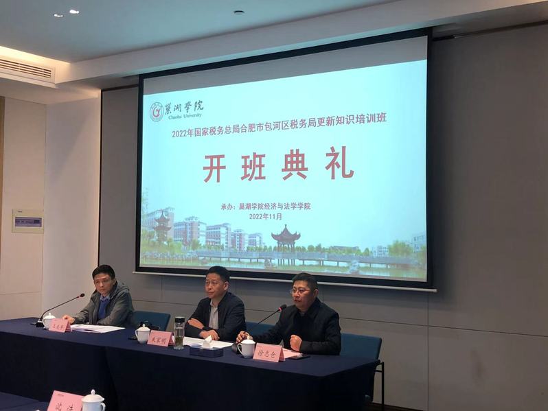 11月16日下午,由合肥市包河區稅務局委托巢湖學院經濟與法學學院承辦的“國家稅務總局合肥市包河區稅務局更新知識培訓班”第一期順利開班。本期培訓采用專題講座與線上學習相結合的形式展開,重點圍繞個人所得稅問題解讀、企業所得稅管理、土地增值稅制度解讀、稅收繳退庫管理、安全保密教育、二十大報告學習以及黨風廉政工作等內容,致力于全面提升新時期稅務工作人員履職能力。