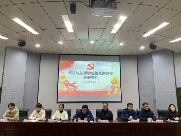 為全面學習貫徹黨的二十大精神,加強對入黨積極分子、發展對象的培養和教育,12月1日,經濟與法學學院在致知樓報告廳舉辦第九期黨校開班典禮暨黨課第一講。院黨委書記石庭,黨委副書記、副院長施瑋,黨委副書記解雪梅,黨委組織委員何東海以及學生黨支部書記出席典禮,典禮由班主任李陳主持,全體學員參會。