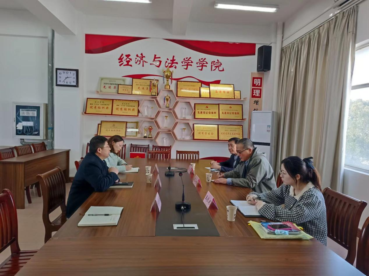 2月27日下午,中銀金融商務有限公司合肥分公司人力資源部總經理趙衛東、招聘經理談駿、招聘專員王佳妮一行三人到經濟與法學學院洽談深化校企合作事宜。經濟與法學學院院長徐志倉、副書記解雪梅、黨政秘書何東海參加了會議。